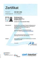 Letzte Woche erhielten wir das neue Zertifikat der LGA InterCert/TÜV Rheinland, welches bis zum 01.04.2018 gültig ist.