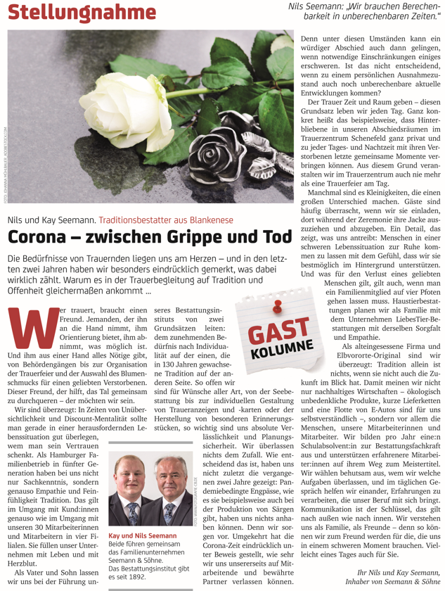 Wir als Beerdigungs-Institut Seemann und Söhne sind in Rissen zuhause und unterstützten